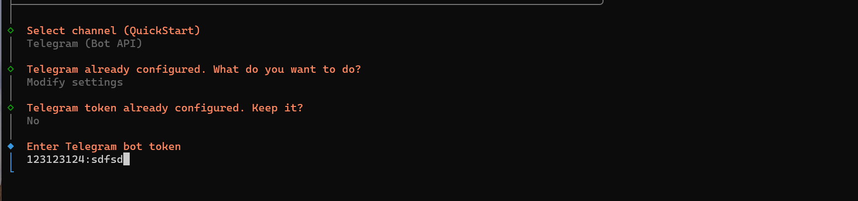 설치와 진행을 하다가 아래와 같이 Select channel에서 "Telegram (Bot API)"를 선택하자.