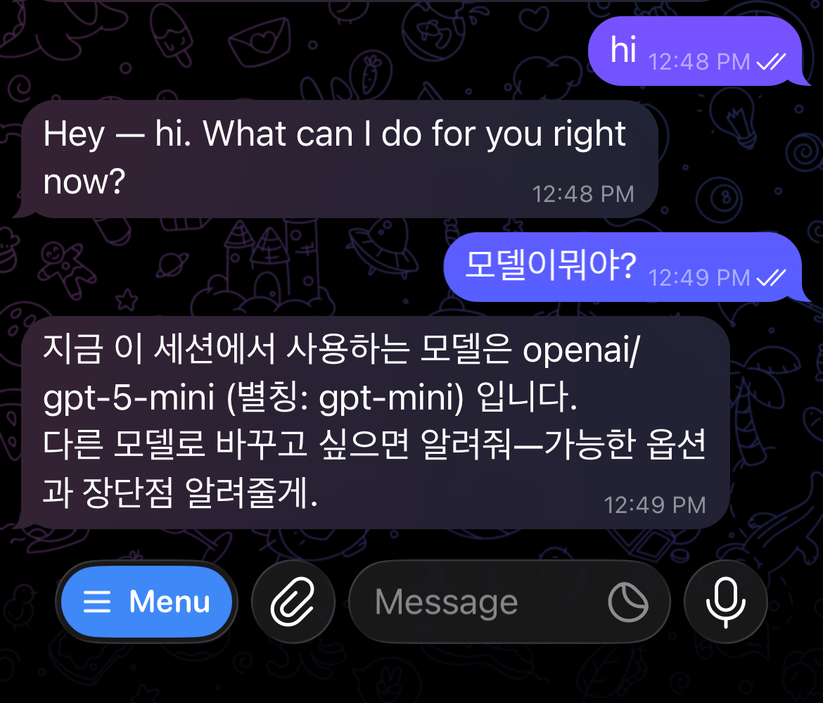 드디어 오픈클로에 telegram을 연동했다.